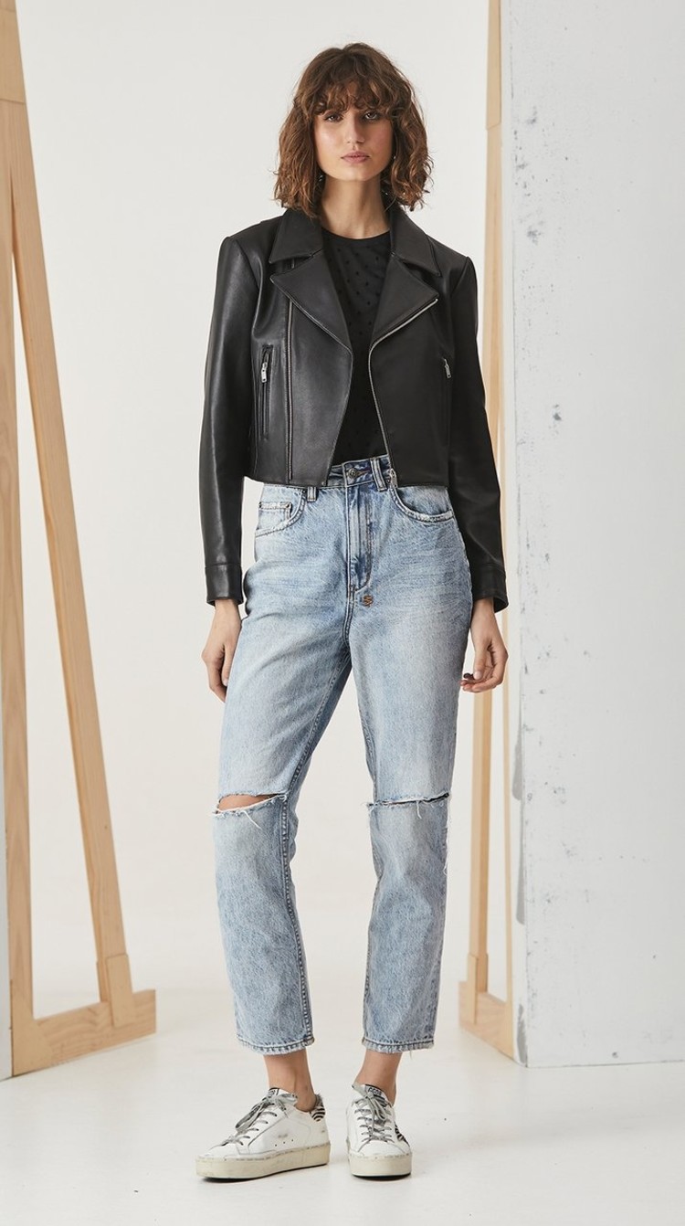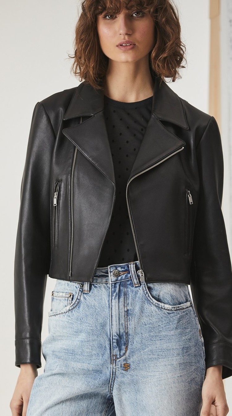 ENA PELLY SMOOTH CROPPED LEATHER JACKET