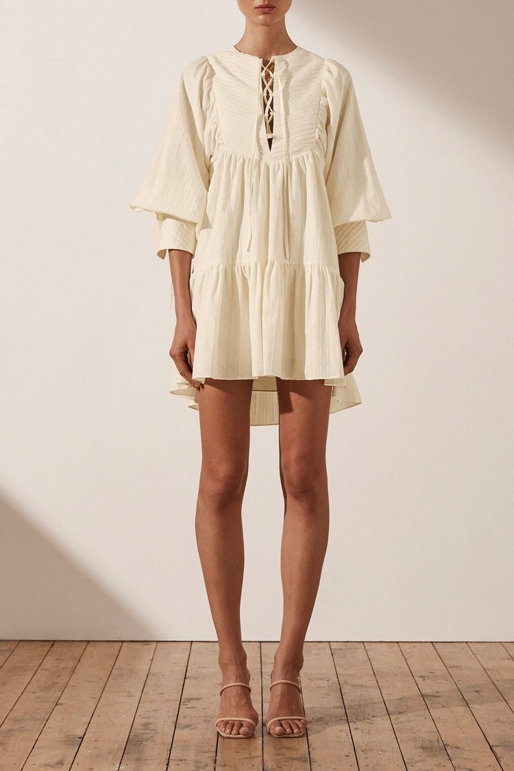 PIN TUCK BALLOON SLLEVE MINI DRESS ELLA